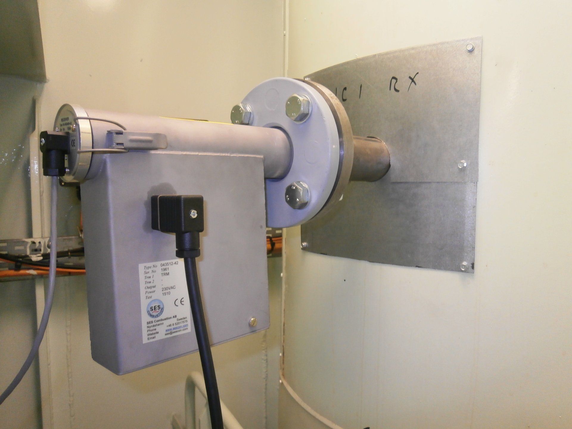 Comprises two optical units, a projectors (light source) and receiver (photo voltaic Cell), which are mounted on the boiler stack, or exhaust duct and a controller. The optical units are connected by electric cables to the control units mounted on Main Panel normally located in the boiler house or casing. The Main Panel is interfaced to Monitoring Panel normally located on E.C.R. where there is the supervision of all measure with alarms for high % opacity and event printer to record any event. The system measures percentage obscuration of the light source caused by soot or dust particles passing through the beam, and converts this to a digital display. The system may have (Option) a independent sensors purging equipment composed by dedicated screw compressor 7,5 KW , 500 liters air bottle with pneumatic connection to each sensor.